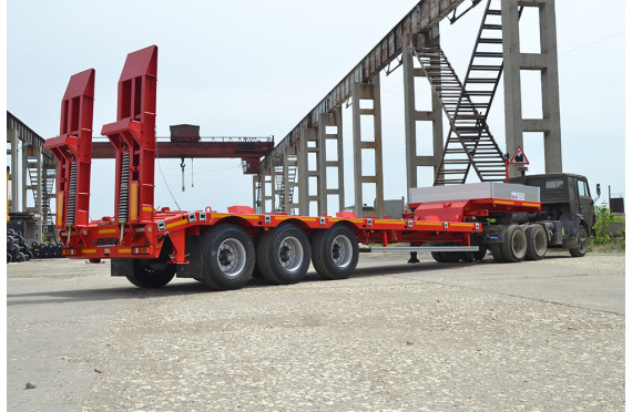 47000 кг, шины 445/65R22,5 / 6+1, платформа без трапов (12000 x 2500 мм, ССУ 1430 мм, пневматическая подвеска, раздвижные коники 1500 мм, съемные борта или без них, в ГАБАРИТЕ по ДЛИНЕ АВТОПОЕЗДА с КАМАЗ 6x6