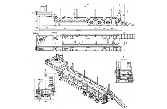 42100 кг, шины 395/85R20 или 445/65R22,5 / 6+1, платформа 9280 (10142 до трапов) x 2530 с уширителями до 3030 мм, ССУ 1510 мм, рессорная или пневматическая подвеска
