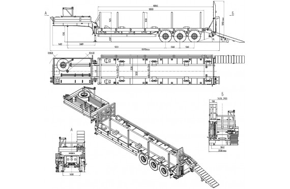 40500 кг, шины 395/85R20 или 445/65R22,5 / 6+1, платформа 10000 (10865 до трапов) x 2530 с уширителями до 3030 мм, ССУ 1510 мм, рессорная или пневматическая подвеска, съемные стойки, передний щит