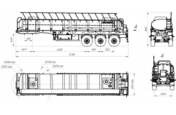 Материал: химстойкое стекловолокно, емкость: 22 куб.м., сечение: эллипсное, конструкция: однослойная или трехслойная (стекловолокно + утеплитель + стекловолокно), крепление: при помощи стяжных лент, перевозимые жидкости: кислоты/едкие вещества/нефть/техвода/щелочные и солевые растворы, автошины 385/65R22,5