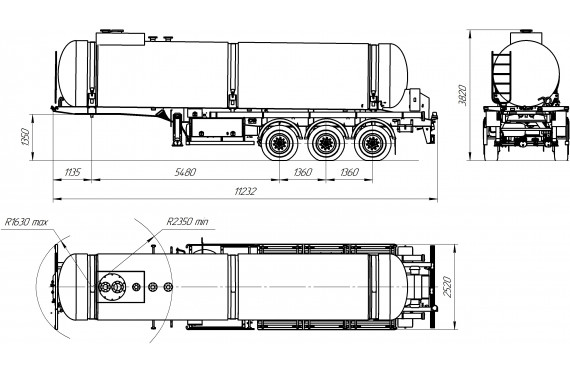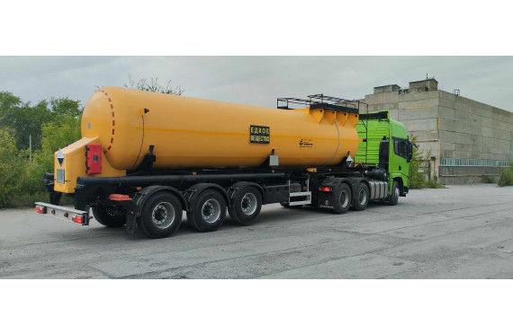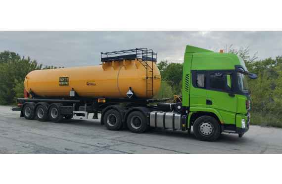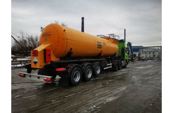 Материал: химстойкое стекловолокно, емкость: 30 куб.м., сечение круглое, конструкция: однослойная или трехслойная (текловолокно + утеплитель + стекловолокно), крепление: при помощи стяжных лент, перевозимые жидкости: нефть, автошины 385/65R22,5; первая ось - подъемная.