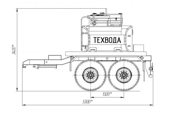 Надписи ТЕХВОДА – с левой, правой сторон, на заднем днище