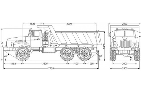 | Раздаточная коробка | ОАО «АЗ «УРАЛ», 2-х ступ. с межосевым дифференциалом (высшая передача - 1,04, низшая передача - 2,15) |